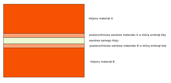 3.) wytrzymałość mechaniczna samej warstwy kleju – ma to znaczenie tylko w przypadku tych klejów, które taką warstwę tworzą, zależy ona od struktury chemicznej kleju